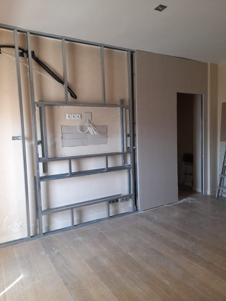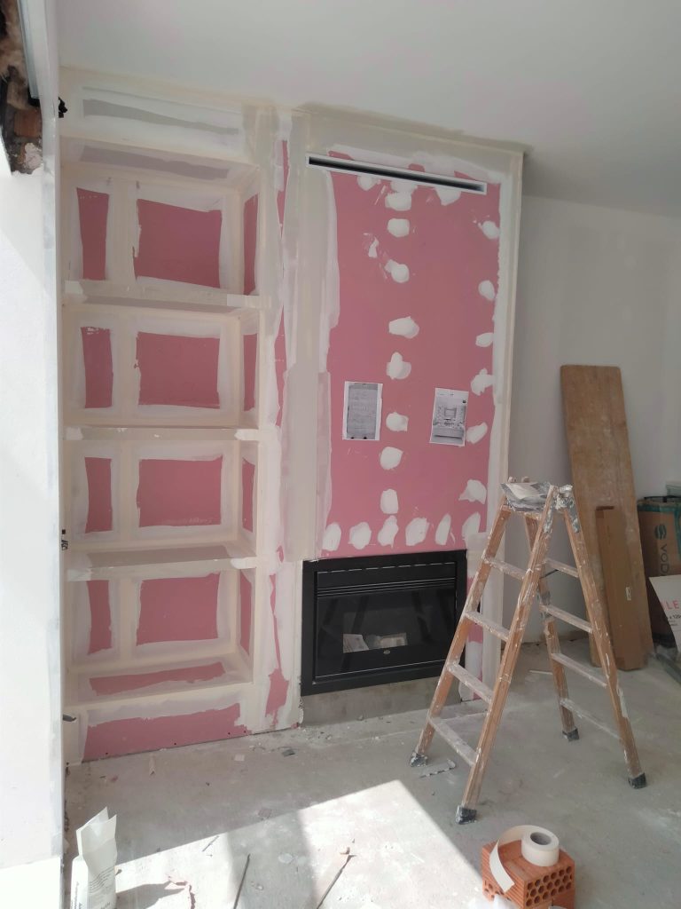 Montaje de pared en Cartón Yeso por parte de Hispaplac, dejando claro su profesionalidad y calidad en espacios residenciales como una habitación