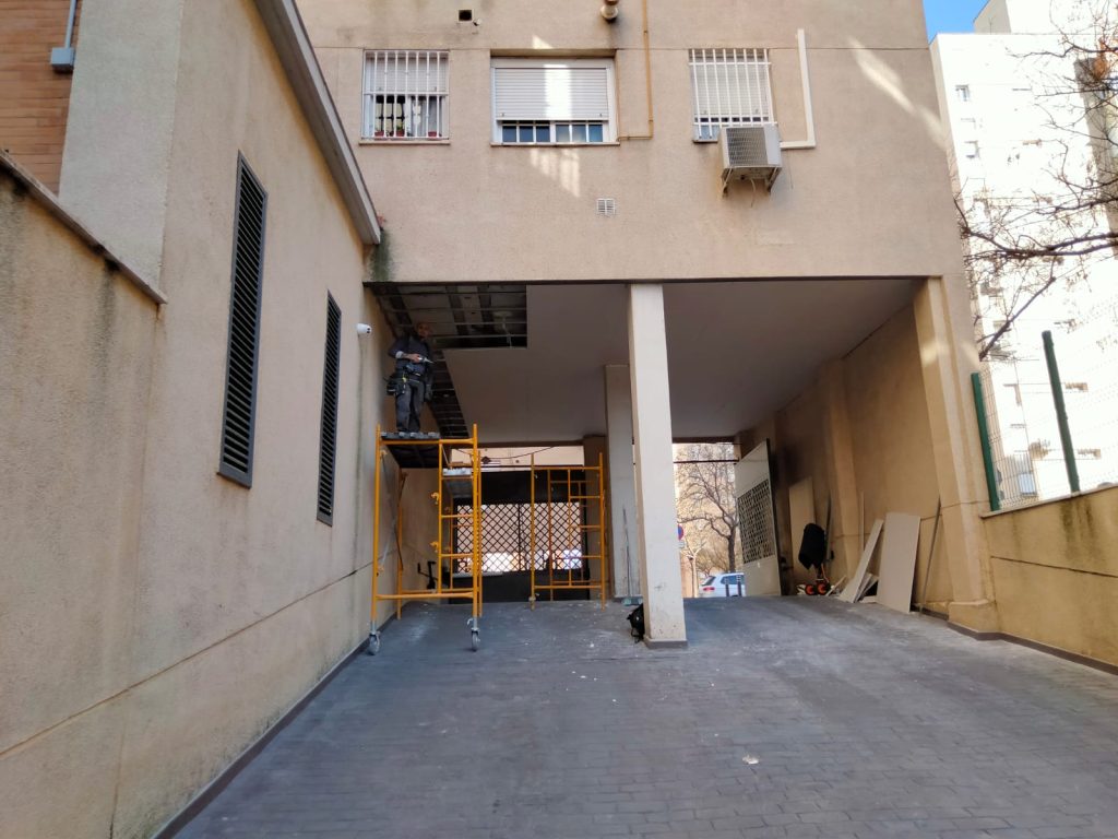 Profesional de Hispaplac en pleno proceso de instalación de divisiones de cartón yeso